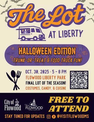 Every Thursday this October, 5–8 PM, Flowood Liberty Park will transform into The Lot at Liberty, a pop-up food event series and Flowood’s newest gathering spot featuring a rotating lineup of local food vendors serving delicious eats against a backdrop of ballfields, pickleball courts, and playgrounds.